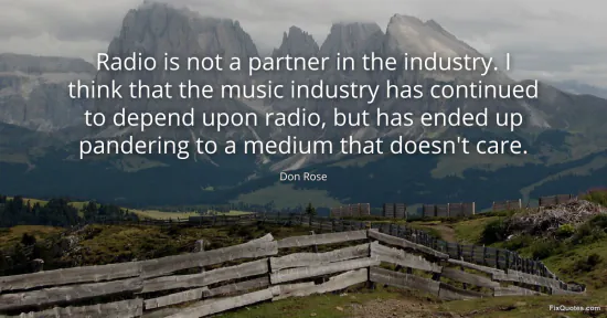 Rose, Don. (2026, January 16). Radio is not a partner in the industry. I think that the music industry has continued to depend upon radio, but has ended up pandering to a medium that doesn't care. FixQuotes. https://fixquotes.com/quotes/radio-is-not-a-partner-in-the-industry-i-think-117283/