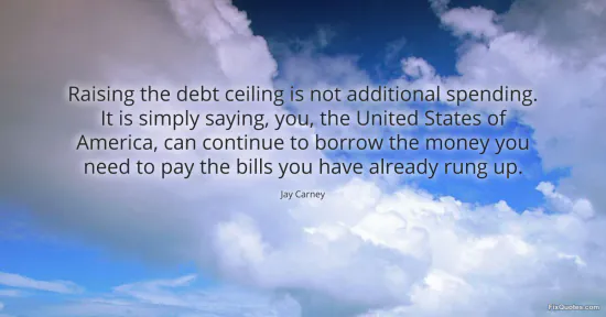 Carney, Jay. "Raising the debt ceiling is not additional spending. It is simply saying, you, the United States of America, can continue to borrow the money you need to pay the bills you have already rung up." FixQuotes. January 17, 2026. https://fixquotes.com/quotes/raising-the-debt-ceiling-is-not-additional-56056/.