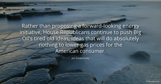 The line is less a policy argument than a frame fight: Jan Schakowsky is trying to define what counts as "serious" energy leadership before the details even enter the room. "Forward-looking" is a coded credential in Democratic energy rhetoric, signaling renewables, efficiency, and industrial policy. By contrast, "Big Oil's tired old ideas" turns Republican proposals into reruns, not alternatives. The intent is to make the GOP position feel temporally backward and culturally captured, as if it belongs to an era when fossil fuel dominance was treated as common sense rather than a choice with consequences.