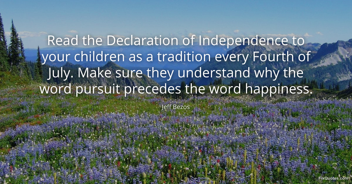 Bezos, Jeff. (2026, March 25). Read the Declaration of Independence to your children as a tradition every Fourth of July. Make sure they understand why the word pursuit precedes the word happiness. FixQuotes. https://fixquotes.com/quotes/read-the-declaration-of-independence-to-your-186403/