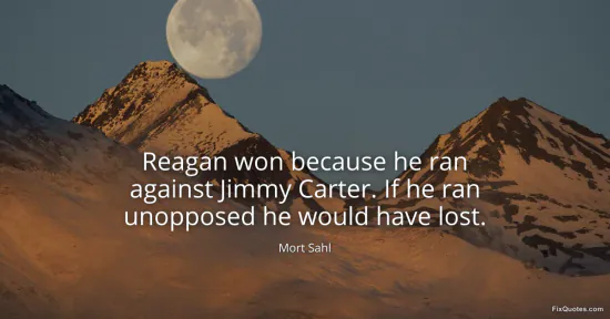 Sahl, Mort. (2026, January 15). Reagan won because he ran against Jimmy Carter. If he ran unopposed he would have lost. FixQuotes. https://fixquotes.com/quotes/reagan-won-because-he-ran-against-jimmy-carter-if-168166/