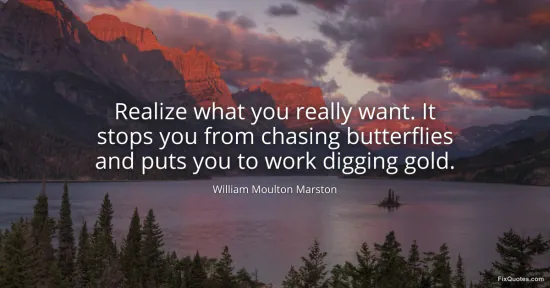Marston, William Moulton. "Realize what you really want. It stops you from chasing butterflies and puts you to work digging gold." FixQuotes. January 15, 2026. https://fixquotes.com/quotes/realize-what-you-really-want-it-stops-you-from-79260/.