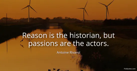 Rivarol, Antoine. (2026, January 16). Reason is the historian, but passions are the actors. FixQuotes. https://fixquotes.com/quotes/reason-is-the-historian-but-passions-are-the-138493/