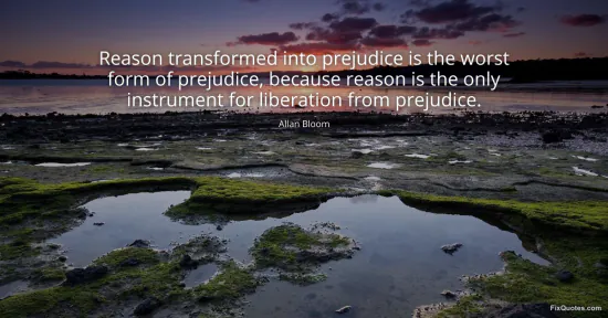 Bloom, Allan. (2026, January 17). Reason transformed into prejudice is the worst form of prejudice, because reason is the only instrument for liberation from prejudice. FixQuotes. https://fixquotes.com/quotes/reason-transformed-into-prejudice-is-the-worst-24731/