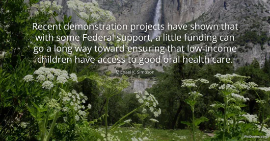 Simpson, Michael K. "Recent demonstration projects have shown that with some Federal support, a little funding can go a long way toward ensuring that low-income children have access to good oral health care." FixQuotes. January 16, 2026. https://fixquotes.com/quotes/recent-demonstration-projects-have-shown-that-88315/.