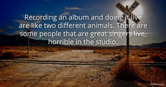 Stallone, Frank. (2026, January 16). Recording an album and doing it live are like two different animals. There are some people that are great singers live, horrible in the studio. FixQuotes. https://fixquotes.com/quotes/recording-an-album-and-doing-it-live-are-like-two-123323/