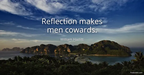 Hazlitt, William. "Reflection makes men cowards." FixQuotes. January 15, 2026. https://fixquotes.com/quotes/reflection-makes-men-cowards-160250/.