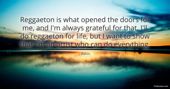 Balvin, J. "Reggaeton is what opened the doors for me, and I'm always grateful for that. I'll do reggaeton for life, but I want to show that I'm an artist who can do everything." FixQuotes. February 4, 2026. https://fixquotes.com/quotes/reggaeton-is-what-opened-the-doors-for-me-and-im-184903/.