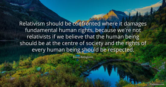 Buttiglione, Rocco. "Relativism should be confronted where it damages fundamental human rights, because we're not relativists if we believe that the human being should be at the centre of society and the rights of every human being should be respected." FixQuotes. January 15, 2026. https://fixquotes.com/quotes/relativism-should-be-confronted-where-it-damages-166565/.