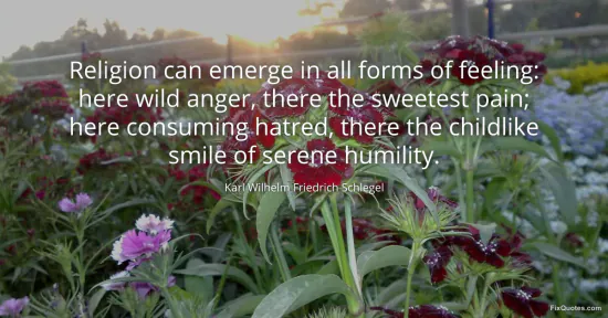 Schlegel, Karl Wilhelm Friedrich. (2026, January 16). Religion can emerge in all forms of feeling: here wild anger, there the sweetest pain; here consuming hatred, there the childlike smile of serene humility. FixQuotes. https://fixquotes.com/quotes/religion-can-emerge-in-all-forms-of-feeling-here-137557/