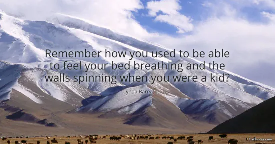 Barry’s line lands like a hand reaching into the back of your throat and pulling up a half-forgotten sensation: that woozy, bodily magic of childhood when the world still moved without asking permission. “Feel your bed breathing” isn’t just cute surrealism; it’s a precise description of how kids experience reality before they’ve learned to file everything under “normal.” The bed becomes animate, the room becomes a ride, and you’re both frightened and thrilled by the fact that your own perception can warp the universe.