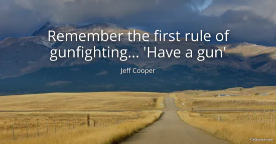 Cooper, Jeff. (2026, February 16). Remember the first rule of gunfighting... 'Have a gun'. FixQuotes. https://fixquotes.com/quotes/remember-the-first-rule-of-gunfighting-have-a-gun-114119/