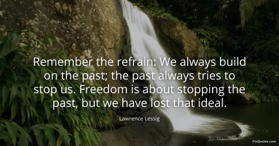 Lessig, Lawrence. "Remember the refrain: We always build on the past; the past always tries to stop us. Freedom is about stopping the past, but we have lost that ideal." FixQuotes. January 16, 2026. https://fixquotes.com/quotes/remember-the-refrain-we-always-build-on-the-past-113995/.