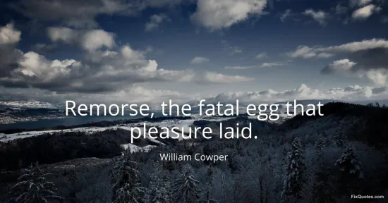 Cowper, William. "Remorse, the fatal egg that pleasure laid." FixQuotes. January 18, 2026. https://fixquotes.com/quotes/remorse-the-fatal-egg-that-pleasure-laid-17925/.