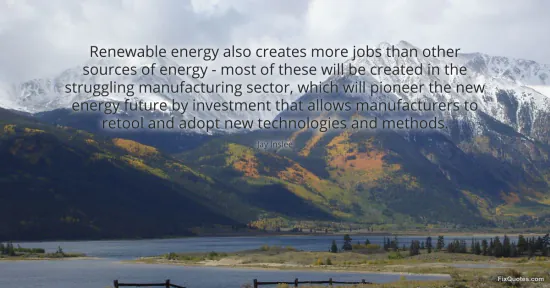 Inslee, Jay. (2026, January 15). Renewable energy also creates more jobs than other sources of energy - most of these will be created in the struggling manufacturing sector, which will pioneer the new energy future by investment that allows manufacturers to retool and adopt new technologies and methods. FixQuotes. https://fixquotes.com/quotes/renewable-energy-also-creates-more-jobs-than-160409/