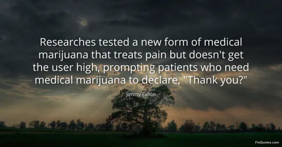Fallon, Jimmy. "Researches tested a new form of medical marijuana that treats pain but doesn't get the user high, prompting patients who need medical marijuana to declare, "Thank you?"." FixQuotes. January 16, 2026. https://fixquotes.com/quotes/researches-tested-a-new-form-of-medical-marijuana-91535/.