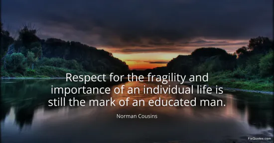 Cousins, Norman. (2026, January 15). Respect for the fragility and importance of an individual life is still the mark of an educated man. FixQuotes. https://fixquotes.com/quotes/respect-for-the-fragility-and-importance-of-an-153933/