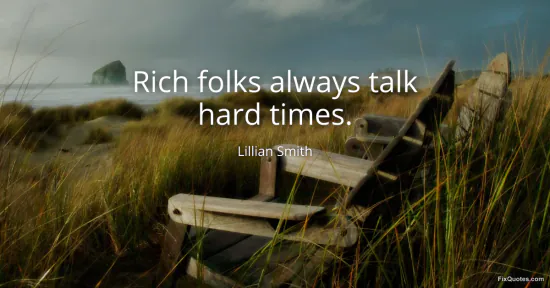 Smith, Lillian. (2026, January 16). Rich folks always talk hard times. FixQuotes. https://fixquotes.com/quotes/rich-folks-always-talk-hard-times-136715/