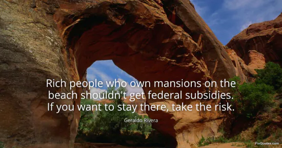 Rivera, Geraldo. (2026, January 17). Rich people who own mansions on the beach shouldn't get federal subsidies. If you want to stay there, take the risk. FixQuotes. https://fixquotes.com/quotes/rich-people-who-own-mansions-on-the-beach-48316/