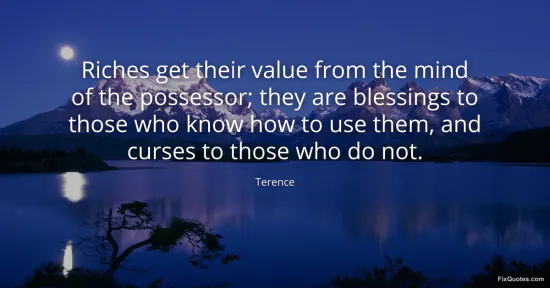 Terence. (2026, January 16). Riches get their value from the mind of the possessor; they are blessings to those who know how to use them, and curses to those who do not. FixQuotes. https://fixquotes.com/quotes/riches-get-their-value-from-the-mind-of-the-112895/