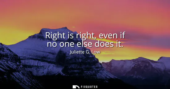 The line "Right is right, even if no one else does it" compresses a whole ethic of integrity into a single beat. It insists that moral truth is not decided by a show of hands. Popularity, convenience, and consensus have no authority over conscience. The emphasis falls on doing, not merely believing; righteousness is an action in the world, taken at cost if necessary, even when applause is absent and company thin.