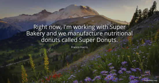 Harris, Franco. (2026, January 16). Right now, I'm working with Super Bakery and we manufacture nutritional donuts called Super Donuts. FixQuotes. https://fixquotes.com/quotes/right-now-im-working-with-super-bakery-and-we-130926/