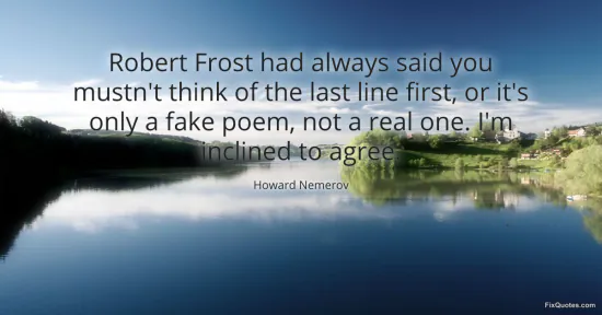 Nemerov, Howard. "Robert Frost had always said you mustn't think of the last line first, or it's only a fake poem, not a real one. I'm inclined to agree." FixQuotes. January 15, 2026. https://fixquotes.com/quotes/robert-frost-had-always-said-you-mustnt-think-of-144149/.