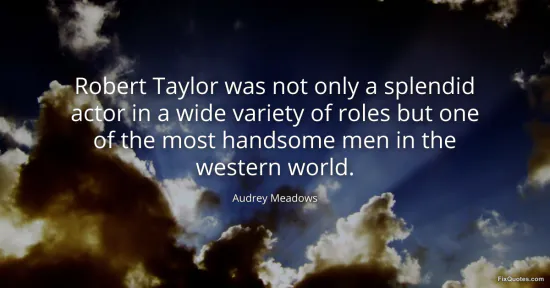 Meadows, Audrey. "Robert Taylor was not only a splendid actor in a wide variety of roles but one of the most handsome men in the western world." FixQuotes. January 17, 2026. https://fixquotes.com/quotes/robert-taylor-was-not-only-a-splendid-actor-in-a-46728/.