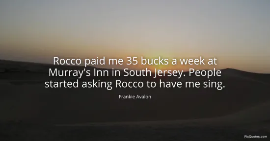 Avalon, Frankie. "Rocco paid me 35 bucks a week at Murray's Inn in South Jersey. People started asking Rocco to have me sing." FixQuotes. January 16, 2026. https://fixquotes.com/quotes/rocco-paid-me-35-bucks-a-week-at-murrays-inn-in-119140/.