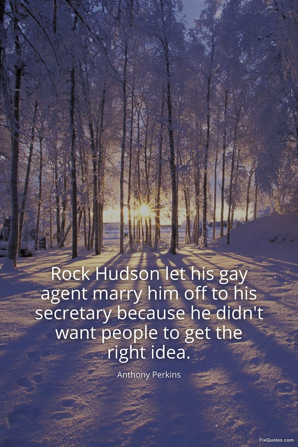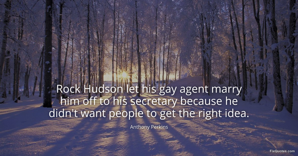 Perkins, Anthony. "Rock Hudson let his gay agent marry him off to his secretary because he didn't want people to get the right idea." FixQuotes. January 16, 2026. https://fixquotes.com/quotes/rock-hudson-let-his-gay-agent-marry-him-off-to-97792/.