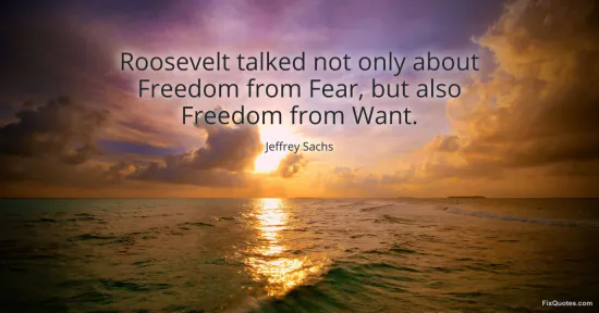 Sachs, Jeffrey. "Roosevelt talked not only about Freedom from Fear, but also Freedom from Want." FixQuotes. January 18, 2026. https://fixquotes.com/quotes/roosevelt-talked-not-only-about-freedom-from-fear-20519/.