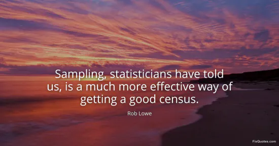 Lowe, Rob. "Sampling, statisticians have told us, is a much more effective way of getting a good census." FixQuotes. January 15, 2026. https://fixquotes.com/quotes/sampling-statisticians-have-told-us-is-a-much-152184/.