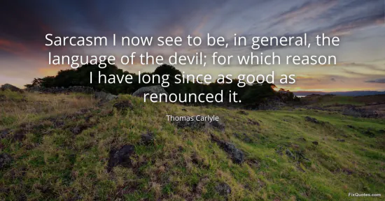 Carlyle, Thomas. (2026, January 14). Sarcasm I now see to be, in general, the language of the devil; for which reason I have long since as good as renounced it. FixQuotes. https://fixquotes.com/quotes/sarcasm-i-now-see-to-be-in-general-the-language-40519/