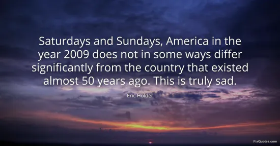 Holder, Eric. "Saturdays and Sundays, America in the year 2009 does not in some ways differ significantly from the country that existed almost 50 years ago. This is truly sad." FixQuotes. January 16, 2026. https://fixquotes.com/quotes/saturdays-and-sundays-america-in-the-year-2009-82314/.