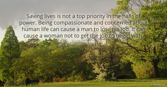 "Saving lives is not a top priority in the halls of power. Being compassionate and concerned about human life can cause a man to lose his job. It can cause a woman not to get the job to begin with"
