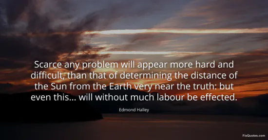 Halley, Edmond. "Scarce any problem will appear more hard and difficult, than that of determining the distance of the Sun from the Earth very near the truth: but even this... will without much labour be effected." FixQuotes. January 16, 2026. https://fixquotes.com/quotes/scarce-any-problem-will-appear-more-hard-and-125475/.