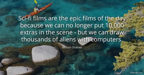 Shatner, William. "Sci-fi films are the epic films of the day because we can no longer put 10,000 extras in the scene - but we can draw thousands of aliens with computers." FixQuotes. January 17, 2026. https://fixquotes.com/quotes/sci-fi-films-are-the-epic-films-of-the-day-66443/.