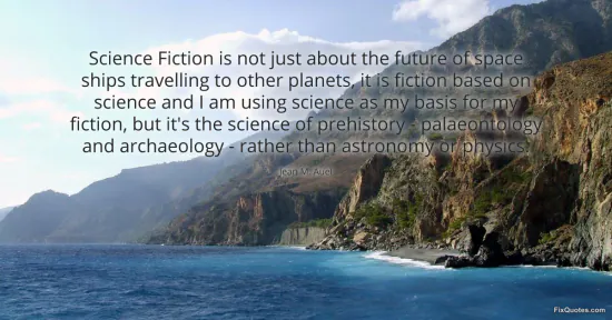 Auel, Jean M. "Science Fiction is not just about the future of space ships travelling to other planets, it is fiction based on science and I am using science as my basis for my fiction, but it's the science of prehistory - palaeontology and archaeology - rather than astronomy or physics." FixQuotes. Accessed February 2, 2026. https://fixquotes.com/quotes/science-fiction-is-not-just-about-the-future-of-80198/.