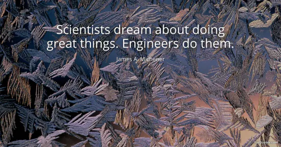 Michener, James A. (2026, January 17). Scientists dream about doing great things. Engineers do them. FixQuotes. https://fixquotes.com/quotes/scientists-dream-about-doing-great-things-60359/