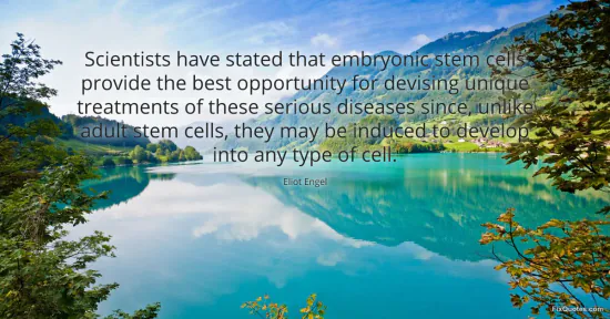 Engel, Eliot. (2026, January 17). Scientists have stated that embryonic stem cells provide the best opportunity for devising unique treatments of these serious diseases since, unlike adult stem cells, they may be induced to develop into any type of cell. FixQuotes. https://fixquotes.com/quotes/scientists-have-stated-that-embryonic-stem-cells-57436/