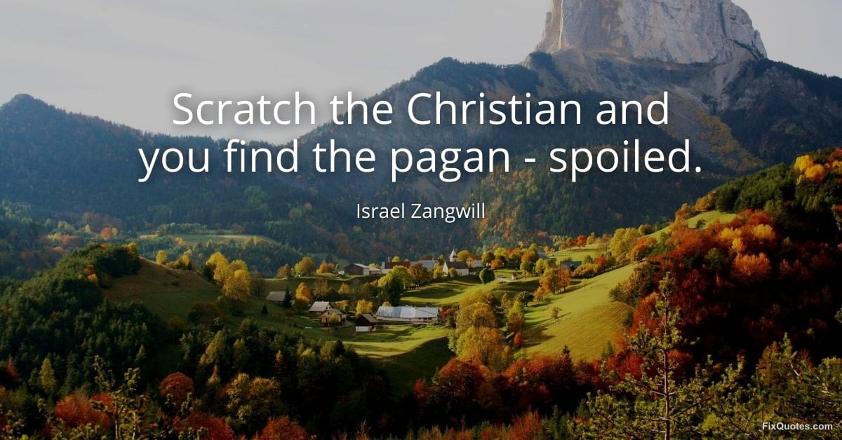 Zangwill, Israel. (2026, January 15). Scratch the Christian and you find the pagan - spoiled. FixQuotes. https://fixquotes.com/quotes/scratch-the-christian-and-you-find-the-pagan-102143/