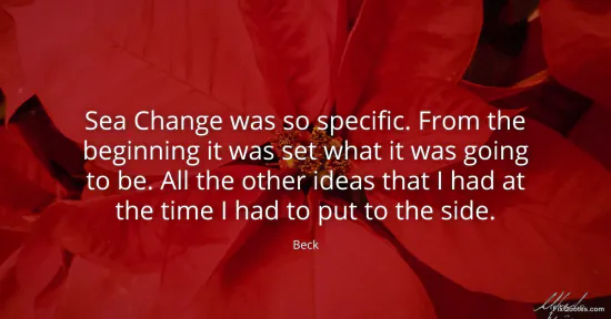 Beck. "Sea Change was so specific. From the beginning it was set what it was going to be. All the other ideas that I had at the time I had to put to the side." FixQuotes. January 16, 2026. https://fixquotes.com/quotes/sea-change-was-so-specific-from-the-beginning-it-138069/.