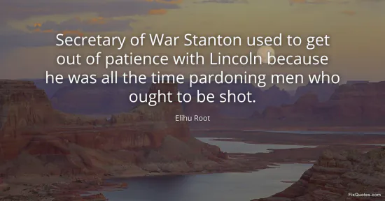 Root, Elihu. (2026, January 15). Secretary of War Stanton used to get out of patience with Lincoln because he was all the time pardoning men who ought to be shot. FixQuotes. https://fixquotes.com/quotes/secretary-of-war-stanton-used-to-get-out-of-140619/