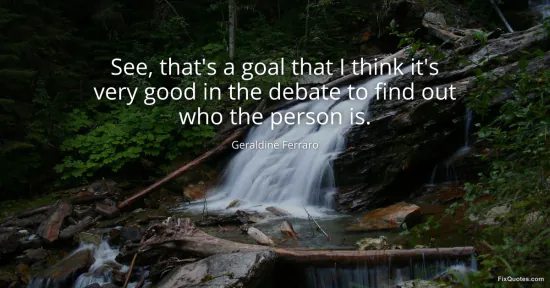 Ferraro, Geraldine. (2026, February 18). See, that's a goal that I think it's very good in the debate to find out who the person is. FixQuotes. https://fixquotes.com/quotes/see-thats-a-goal-that-i-think-its-very-good-in-91055/