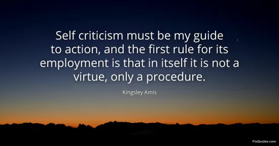 Amis, Kingsley. (2026, January 17). Self criticism must be my guide to action, and the first rule for its employment is that in itself it is not a virtue, only a procedure. FixQuotes. https://fixquotes.com/quotes/self-criticism-must-be-my-guide-to-action-and-the-69793/