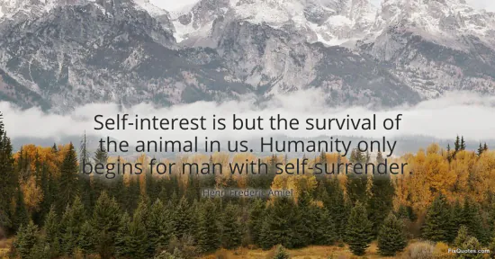 Amiel, Henri Frederic. (2026, January 15). Self-interest is but the survival of the animal in us. Humanity only begins for man with self-surrender. FixQuotes. https://fixquotes.com/quotes/self-interest-is-but-the-survival-of-the-animal-144129/