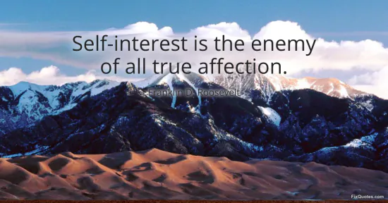 Roosevelt, Franklin D. (2026, January 17). Self-interest is the enemy of all true affection. FixQuotes. https://fixquotes.com/quotes/self-interest-is-the-enemy-of-all-true-affection-43440/