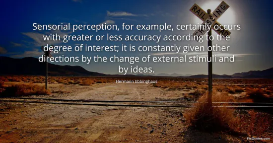 Ebbinghaus, Hermann. (2026, January 17). Sensorial perception, for example, certainly occurs with greater or less accuracy according to the degree of interest; it is constantly given other directions by the change of external stimuli and by ideas. FixQuotes. https://fixquotes.com/quotes/sensorial-perception-for-example-certainly-occurs-73708/