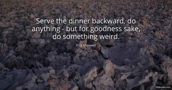 Maxwell, Elsa. (2026, January 17). Serve the dinner backward, do anything - but for goodness sake, do something weird. FixQuotes. https://fixquotes.com/quotes/serve-the-dinner-backward-do-anything-but-for-50043/