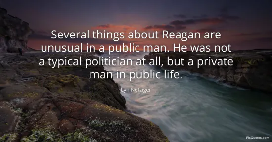 Nofziger, Lyn. (2026, January 17). Several things about Reagan are unusual in a public man. He was not a typical politician at all, but a private man in public life. FixQuotes. https://fixquotes.com/quotes/several-things-about-reagan-are-unusual-in-a-77279/